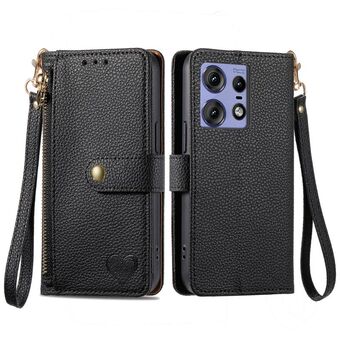 For Motorola Edge 50 Pro Love Zipper Lanyard Leather Phone Case(Black)