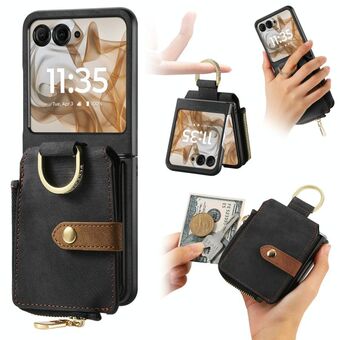 For Motorola Razr 50 Ultra Retro Ring Vertical Zipper Wallet Phone Case(Black)