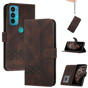 For Motorola Edge 20 Pro Cubic Skin Feel Flip Leather Phone Case(Dark Brown)