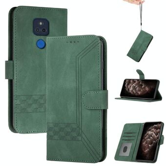 For Motorola Moto G Play 2021 Cubic Skin Feel Flip Leather Phone Case(Dark Green)