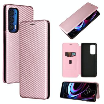 For Motorola Edge 2021 Carbon Fiber Texture Leather Phone Case with Card Slot(Pink)