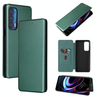 For Motorola Edge 2021 Carbon Fiber Texture Leather Phone Case with Card Slot(Green)