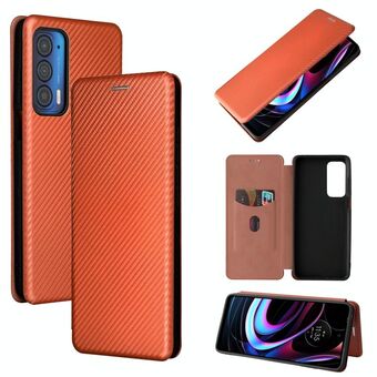 For Motorola Edge 2021 Carbon Fiber Texture Leather Phone Case with Card Slot(Brown)