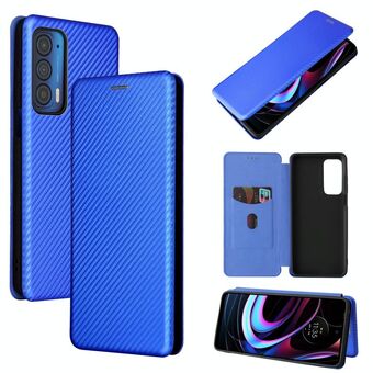 For Motorola Edge 2021 Carbon Fiber Texture Leather Phone Case with Card Slot(Blue)