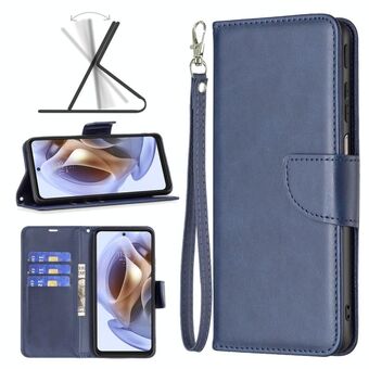 For Motorola Moto G31 / G41 Side Fingerprint Retro Lambskin Texture Leather Phone Case(Blue)