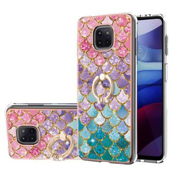 For Motorola Moto G Power 2021 Electroplating Pattern IMD TPU Shockproof Case with Rhinestone Ring Holder(Colorful Scales)