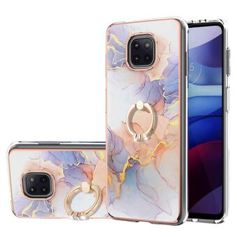 For Motorola Moto G Power 2021 Electroplating Pattern IMD TPU Shockproof Case with Rhinestone Ring Holder(Milky Way White Marble)