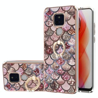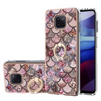 For Motorola Moto G Play 2021 Electroplating Pattern IMD TPU Shockproof Case with Rhinestone Ring Holder(Pink Scales)