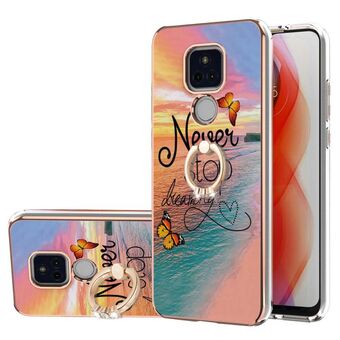 For Motorola Moto G Play 2021 Electroplating Pattern IMD TPU Shockproof Case with Rhinestone Ring Holder(Dream Chasing Butterfly)