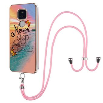 For Motorola Moto G Play 2021 Electroplating Pattern IMD TPU Shockproof Case with Neck Lanyard(Dream Chasing Butterfly)