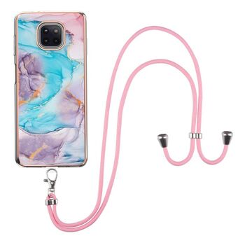 For Motorola Moto G Power 2021 Electroplating Pattern IMD TPU Shockproof Case with Neck Lanyard(Milky Way White Marble)