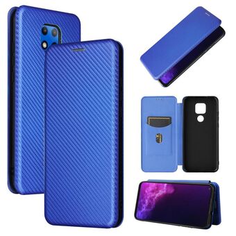 For Motorola Moto G30 / G10 Carbon Fiber Texture Horizontal Flip TPU + PC + PU Leather Case with Card Slot(Blue)
