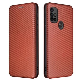 For Motorola Moto G30 / G10 Carbon Fiber Texture Horizontal Flip TPU + PC + PU Leather Case with Card Slot(Brown)