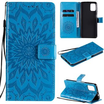 For Motorola Moto G9 Plus Pressed Printing Sunflower Pattern Horizontal Flip PU Leather Case with Holder & Card Slots & Wallet & Lanyard(Blue)