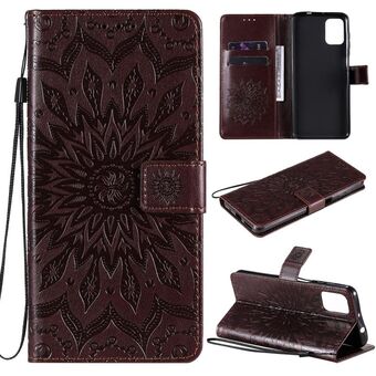 For Motorola Moto G9 Plus Pressed Printing Sunflower Pattern Horizontal Flip PU Leather Case with Holder & Card Slots & Wallet & Lanyard(Brown)