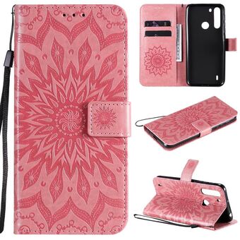 For Motorola One Fusion Pressed Printing Sunflower Pattern Horizontal Flip PU Leather Case with Holder & Card Slots & Wallet & Lanyard(Pink)