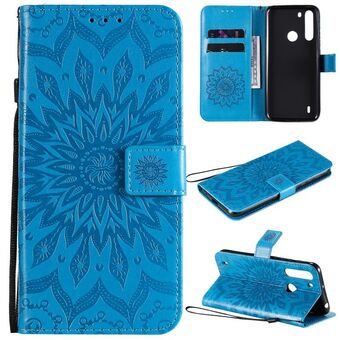 For Motorola One Fusion Pressed Printing Sunflower Pattern Horizontal Flip PU Leather Case with Holder & Card Slots & Wallet & Lanyard(Blue)