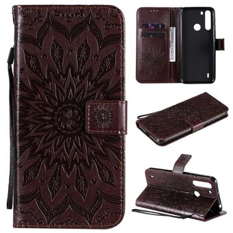 For Motorola One Fusion Pressed Printing Sunflower Pattern Horizontal Flip PU Leather Case with Holder & Card Slots & Wallet & Lanyard(Brown)
