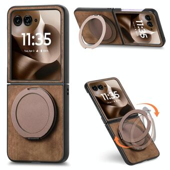 For Motorola Moto Razr 50 Retro Leather Rotation Round Holder Phone Case(Brown)