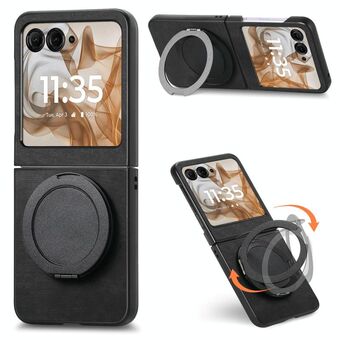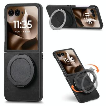 For Motorola Moto Razr 60 Retro Leather Rotation Round Holder Phone Case(Black)