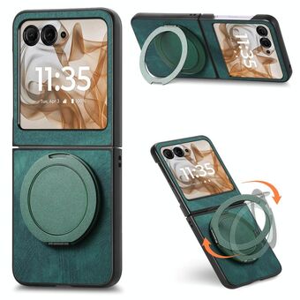 For Motorola Moto Razr 60 Retro Leather Rotation Round Holder Phone Case(Green)