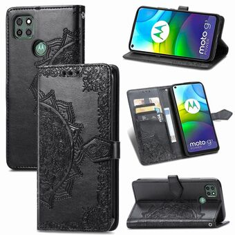 For Motorola G9 Power Mandala Flower Embossed Horizontal Flip Leather Case with Holder & Three Card Slots & Wallet & Lanyard(Black)