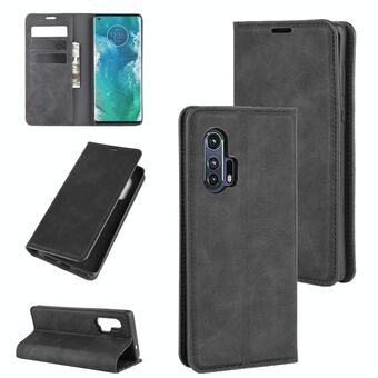 For Motorola Edge+ Retro-skin Business Magnetic Suction Leather Case with Holder & Card Slots & Wallet(Black)