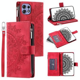 For Motorola Edge 50 Pro Multi-Card Totem Zipper Leather Phone Case(Red)