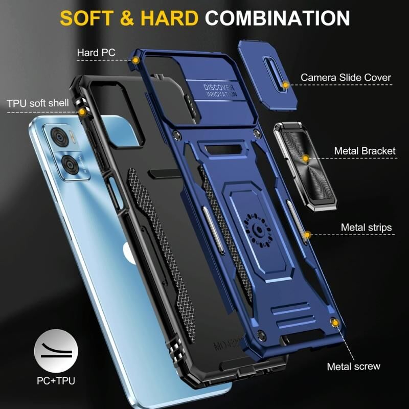 Motorola Moto E22 θωράκιση PC + TPU Ασπίδα κάμερας θήκη τηλεφώνου (Ναυτικό μπλε)