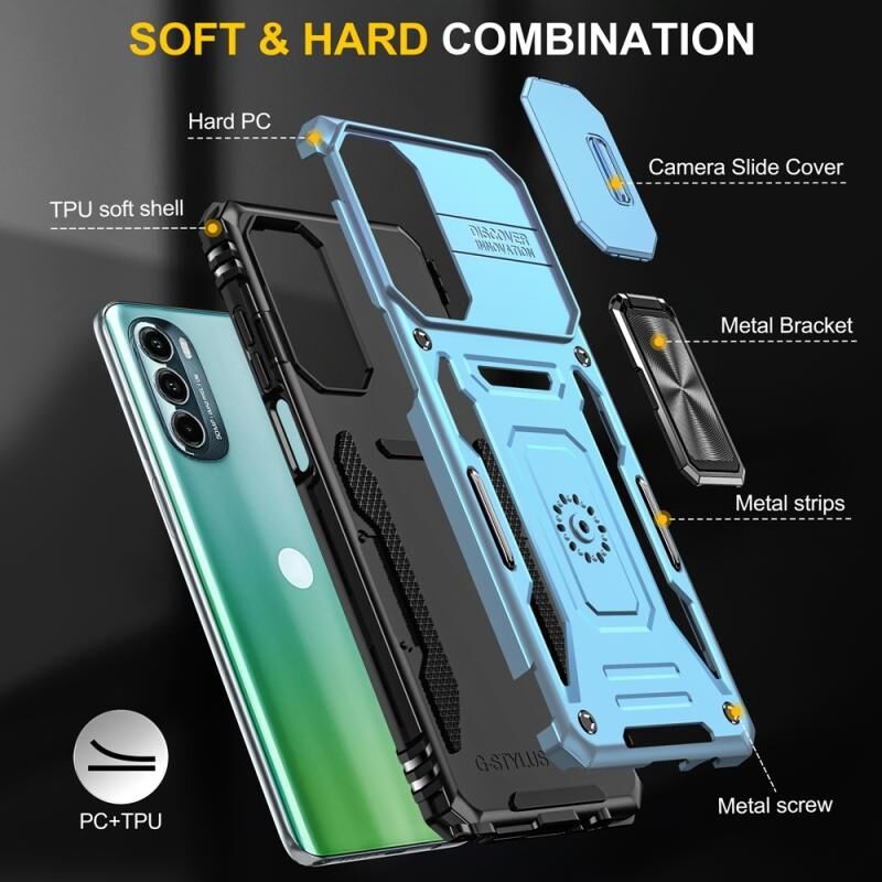 Motorola Moto G Stylus 5G 2022 θωράκιση PC + TPU Ασπίδα κάμερας θήκη τηλεφώνου (Ανοιχτό μπλε)