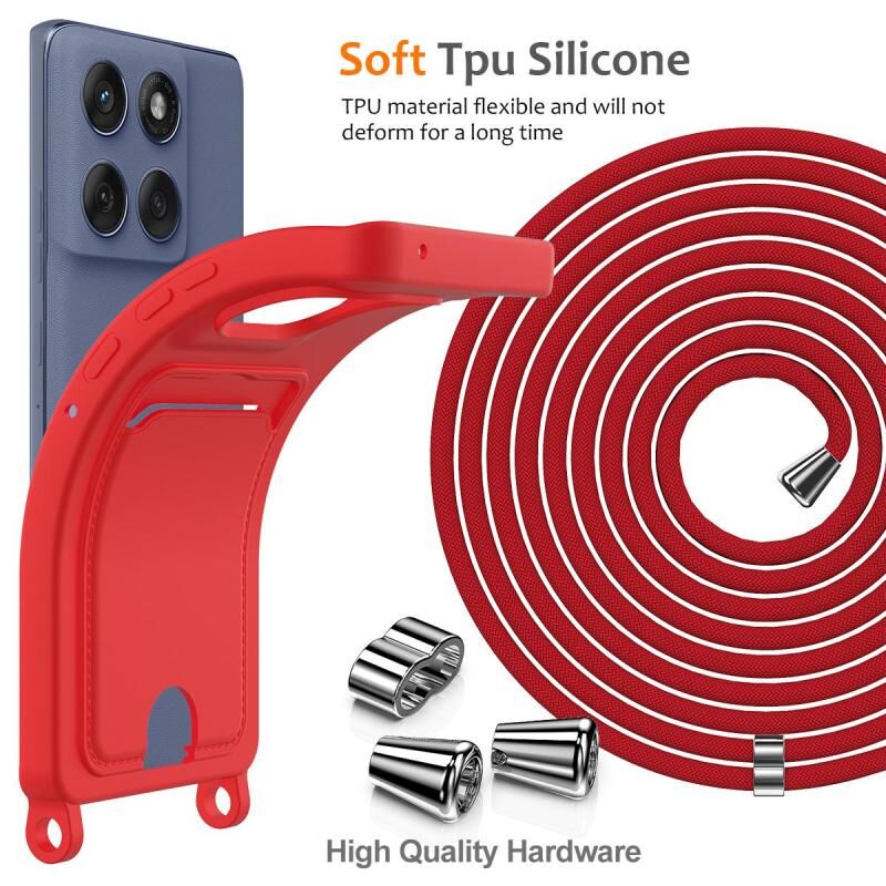 Motorola Moto G Stylus 5G 2025 Integrated Card Bag Solid Color Liquid Silicone Phone Case with Lanyard(Red)