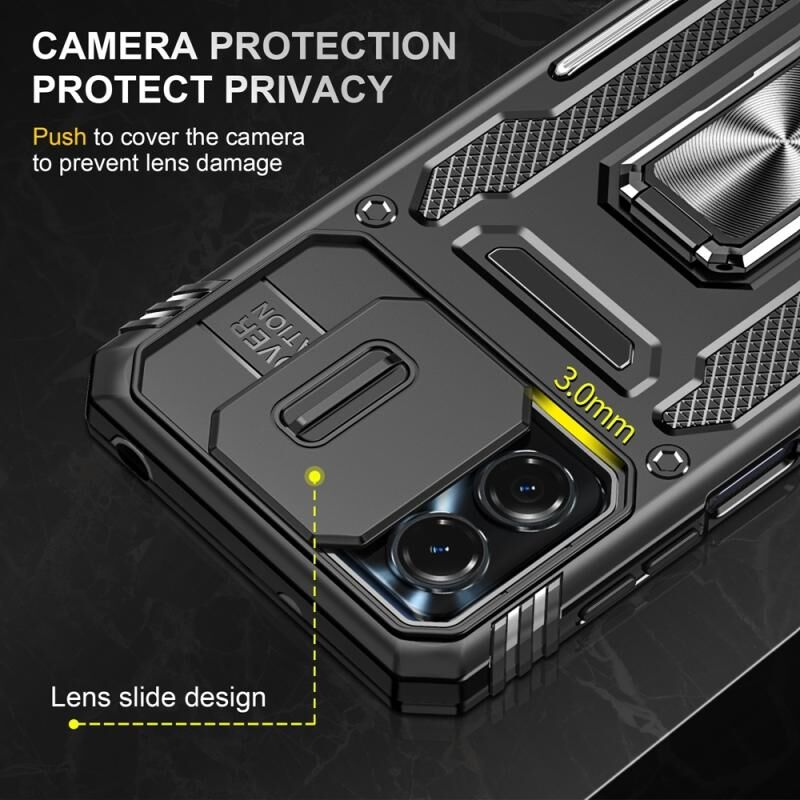 Motorola Moto G13 θήκη τηλεφώνου θωράκισης PC + TPU ασπίδα κάμερας (Μαύρο)