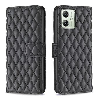 Για Motorola Moto G54 5G EU Edition Diamond Lattice Wallet Flip Δερμάτινη θήκη τηλεφώνου (Μαύρο)