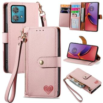 Για Motorola Moto G84 αγάπη φερμουάρ φερμουάρ δερμάτινη θήκη τηλεφώνου (ροζ)