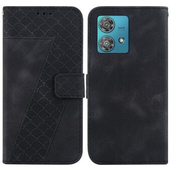 Θήκη τηλεφώνου από δέρμα με ανάγλυφο σχέδιο σε σχήμα επτά για Motorola Edge 40 Neo (Μαύρο)