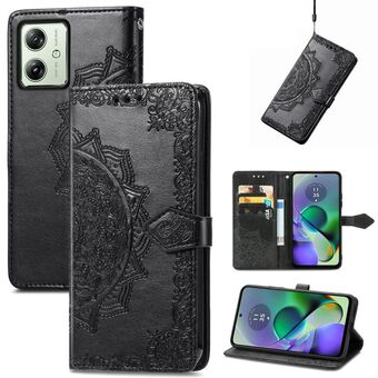 Για Motorola G54 5G Mandala λουλούδι ανάγλυφο δερμάτινη θήκη τηλεφώνου (μαύρο)