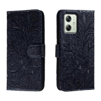 Για Motorola Moto G54 Lace λουλούδι ανάγλυφο Flip δερμάτινη θήκη τηλεφώνου (σκούρο μπλε)
