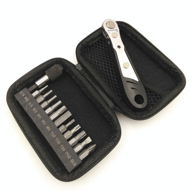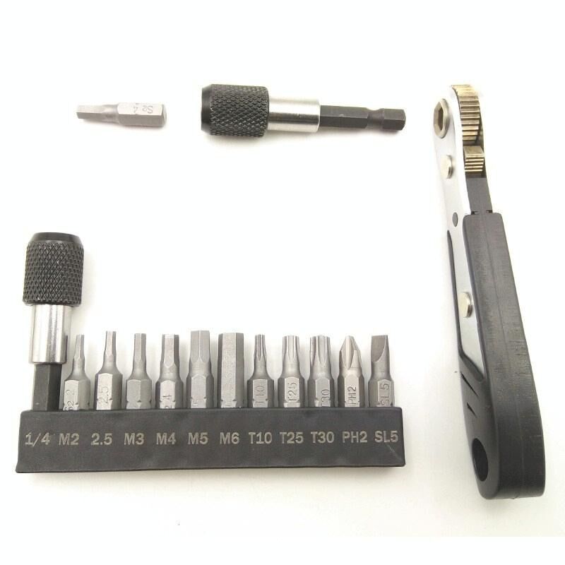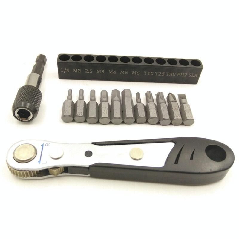1. Υλικό: Μπιτ κράματος χάλυβα S2, κλειδί ράτσας ABS + σκληρυμένο κράμα χάλυβα 2. Αντάπτορας: ίσιο: SL5, σταυρός: PH2, εσωτερικό εξάγωνο: 2/2.5/3/4/5/6 mm, αστεροειδές: T10, T25, T30 3. Συνολικό μέγεθος σετ προϊόντος: περίπου 115X80X40mm 4. Μέγεθος κλειδιού ράτσας: 112x23 mm 5. Μέγεθος μαγνητικής προέκτασης με γρήγορο κλείδωμα: 65 mm μήκος 6. Μεικτό βάρος: περίπου 180 g 7. Υλικό τσάντας αποθήκευσης: EVA 8. Μεγάλο γρανάζι 36 δοντιών με φαρδιά αυλάκωση, πιο ανθεκτικό και ευκολότερο στη συντήρηση