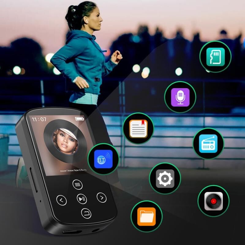 MP3 Bluetooth Music Player HIFI Sports Clip Touch Screen MP4, Μνήμη: (Μαύρο)
