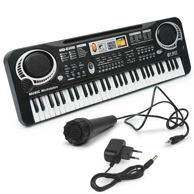 Μουσικό όργανο MQ6106 με 61 πλήκτρα, πολυλειτουργικό ηλεκτρονικό, παιχνίδι για παιδιά με μικρόφωνο, Προδιαγραφή: Βύσμα ΕΕ.