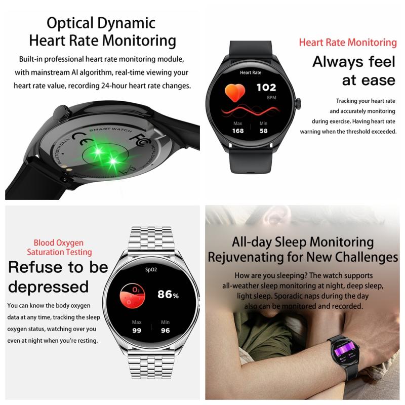 1. Support Bluetooth calls, multiple menu styles, support 200 dials, breathing training, custom dials, stopwatch, brightness adjustment, multi-sports mode, sleep monitoring, real heart rate blood oxygen, information push, remote music, remote photography, real-time weather, find mobile phone (connect to mobile phone), Bluetooth music playback, calculator, split screen display, weather, alarm clock, sedentary reminder, sports step counting, calorie consumption, sports mileage record, game, voice assistant