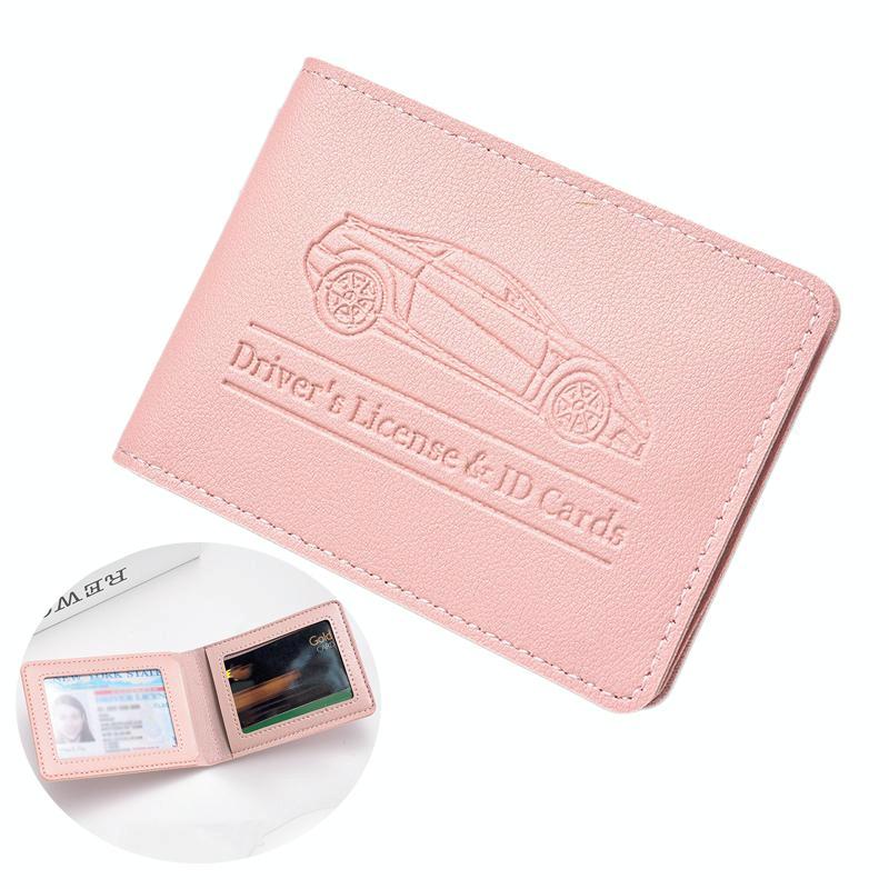 Multi-card Driver License Card Holder Women Driving License Leather Protective Case ID Credit Card Bag, Spec: 2 Card Slot(Pink)