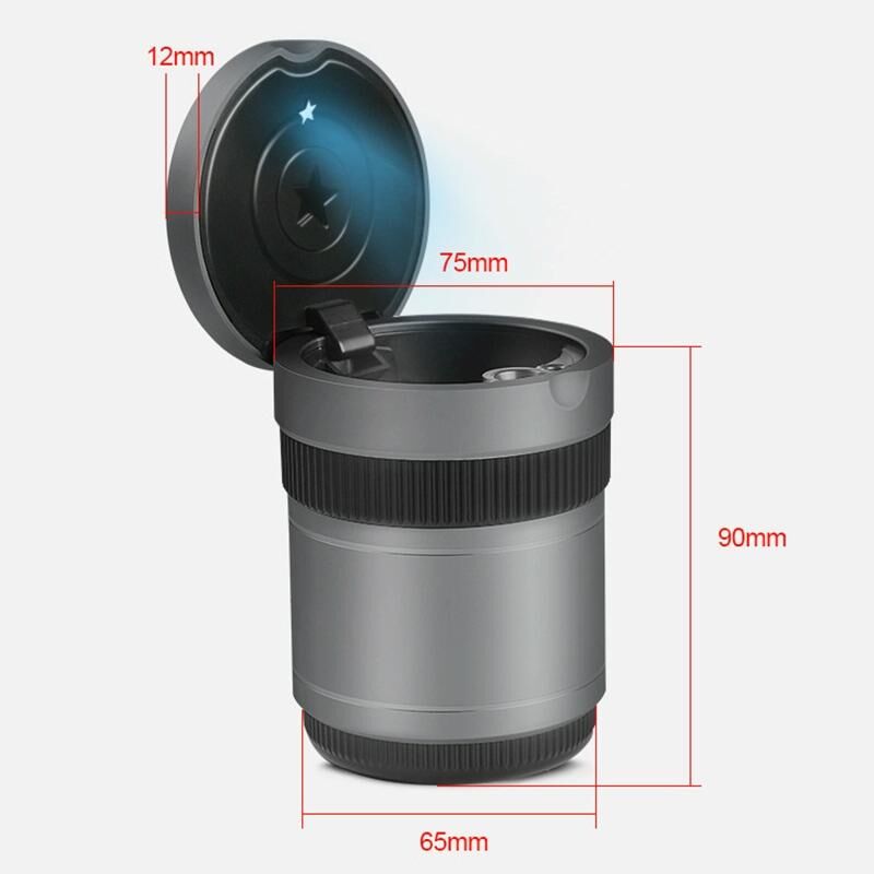 Πολυλειτουργική Φορητή Λεβητάς Σταχτοδοχείο Αυτοκινήτου με Καπάκι LED (Γκρι)