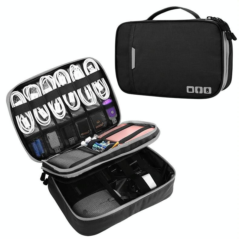 Πολυλειτουργικός φορτιστής ακουστικών Καλώδιο αποθήκευσης δεδομένων τσάντα αποθήκευσης φορητό πακέτο ρεύματος, μέγεθος: Μέγεθος: L, 25 x 18 x 7cm (Μαύρο)