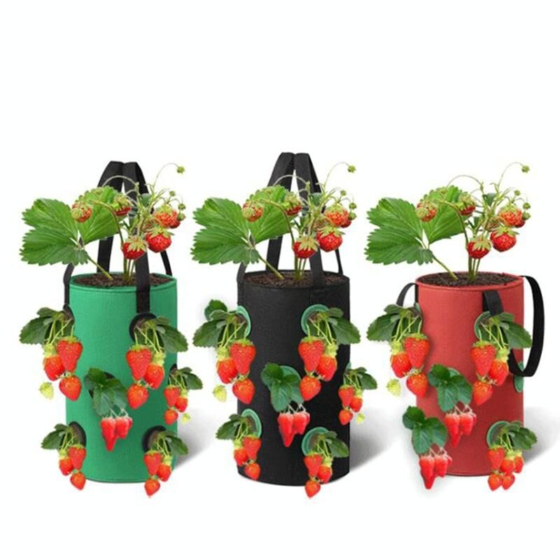 Πολυ-στόμια κρεμαστή τσάντα φύτευσης φράουλας με 13 τρύπες, Μέγεθος: 20x35cm (Πράσινο)