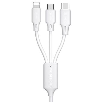 WK WDC-103 3A 3 In 1 8 Pin + Micro USB + Type-C / USB-C Fullspeed Pro Charging Data Cable, Length: 1.15m (White) (WK)
