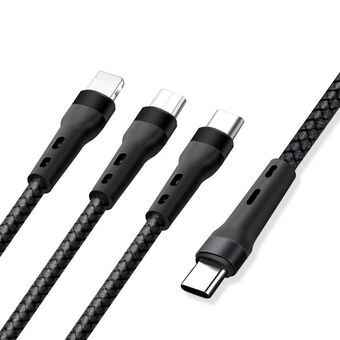 100W 6A Type-C to 8 Pin+Type-C+Micro USB Charging Data Cable, 1.3m(Black)