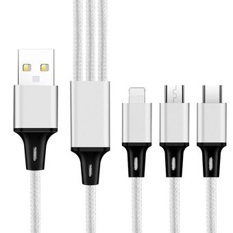 2 PCS ZZ034 USB To 8 Pin + USB-C / Type-C + Micro USB 3 In 1 Fast Charging Cable, Style: Mini-Silver