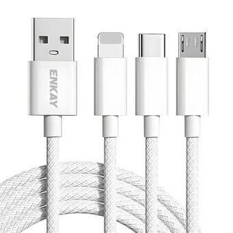 ENKAY CB173 3-in-1 Candy Color 60W USB to 8 Pin / Type-C / Micro USB Charging Data Cable, Length:1m(White) (ENKAY)