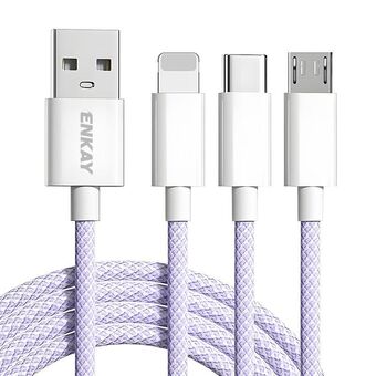 ENKAY CB173 3-in-1 Candy Color 60W USB to 8 Pin / Type-C / Micro USB Charging Data Cable, Length:1m(Purple) (ENKAY)